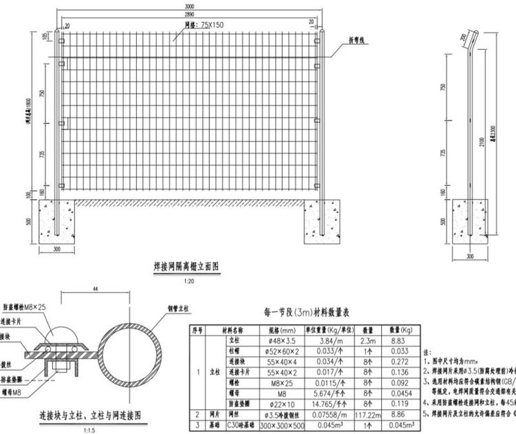 1、圖中焊接網隔離柵尺寸均為mm。