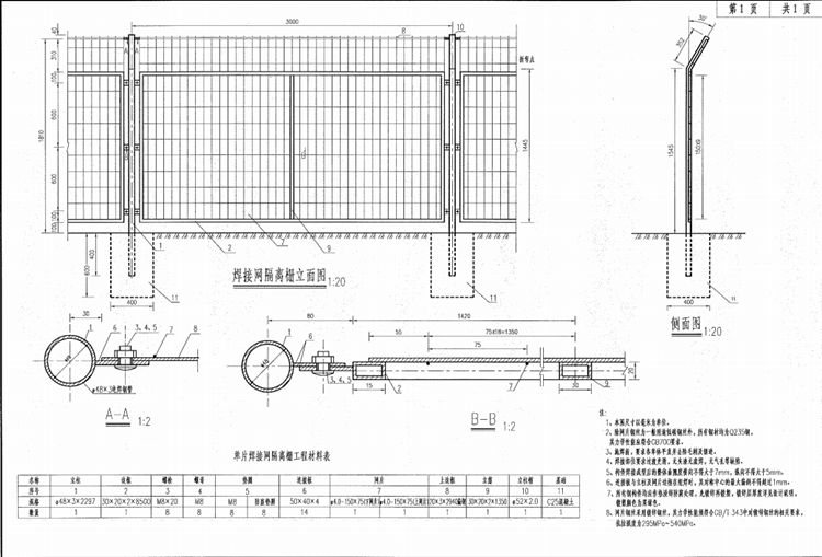 2)、除網(wǎng)片鋼絲為一般用途低碳鋼絲外,所有鋼材均為Q235鋼,其力學(xué)性能應(yīng)符合GB700要求。