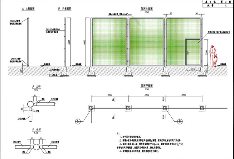 2、圍網(wǎng)分段可根據(jù)現(xiàn)場(chǎng)實(shí)際情況作微調(diào),圍網(wǎng)、圍網(wǎng)門等設(shè)施均采用廠家成品。