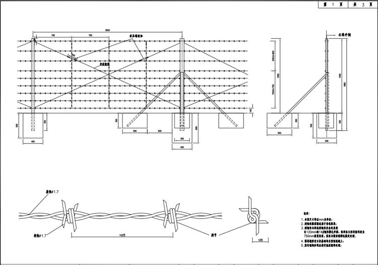 3、刺鋼絲網(wǎng)隔離柵技術(shù)要求及施工注意事項