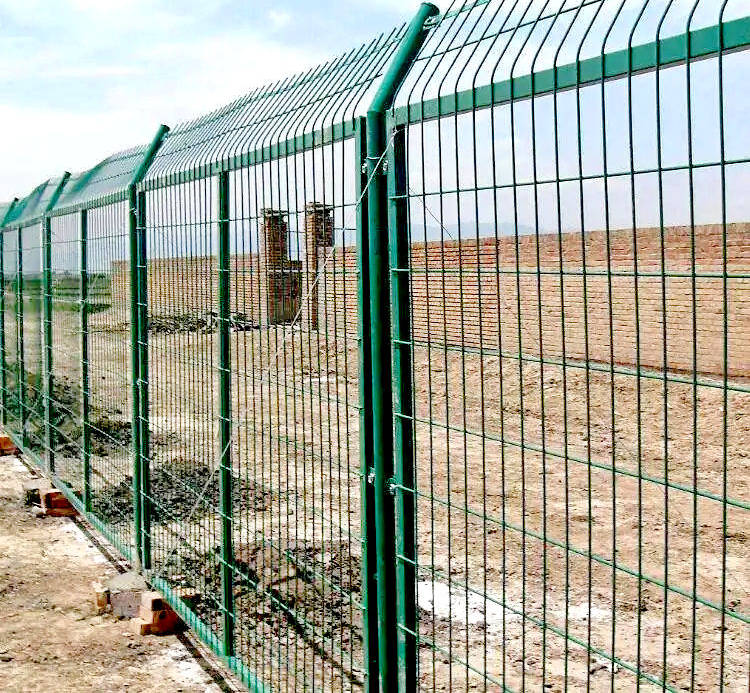 圍欄采用定制成品圍網(wǎng),圍網(wǎng)邊框長(zhǎng)3000mm,高度為2300mm,下部垂直段高 2000mm,上部彎折高度 300mm,彎折角度 30°,網(wǎng)孔尺寸50×150 mm;圍網(wǎng)柱中距 3.0m,立柱采用φ60×2.5mm雙面熱鍍鋅圓鋼管,立柱高2900mm(深入基礎(chǔ)600mm)。