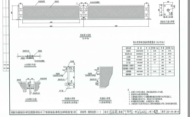 7、防眩網(wǎng)立柱底部及加勁鋼板底部均與預(yù)埋鋼板進(jìn)行焊接,連接橫桿與防眩網(wǎng)立柱、抱箍間均采用焊接,所有焊縫必須滿焊,表面平整。