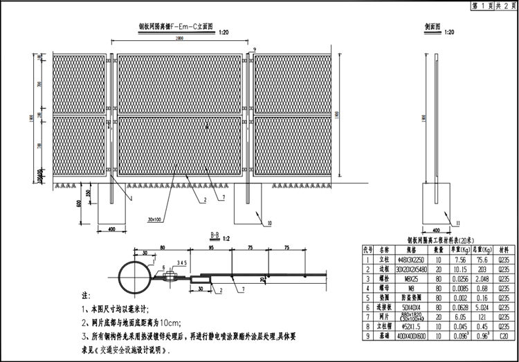4、鋼板網(wǎng)隔離柵由于施工現(xiàn)場實(shí)際地形情況復(fù)雜,施工過程中必須嚴(yán)格參照設(shè)計(jì)原則全線排查,合理選用設(shè)計(jì)的圍封方式,如有圖紙以外的特殊情況,應(yīng)及時(shí)向設(shè)計(jì)單位反映。