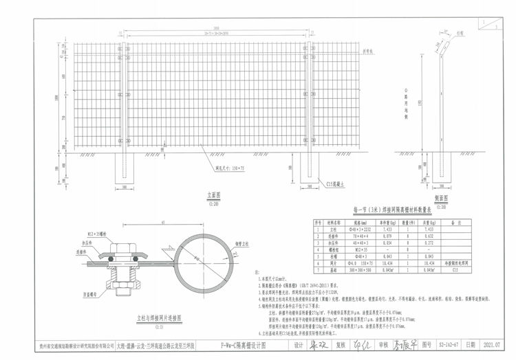 1.本圖F-Ww-C隔離柵尺寸以mm計。