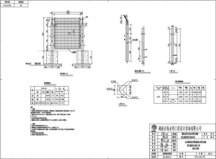 5.金屬網(wǎng)片防護(hù)柵欄高度1.8m,鋼筋混凝士立柱高度2.2m。