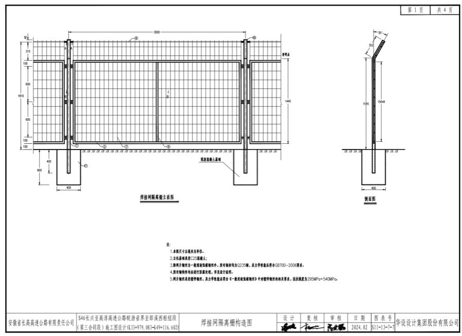 S46長興至高淳高速公路皖浙省界至郎溪西樞紐段焊接網(wǎng)隔離柵生產(chǎn)廠家