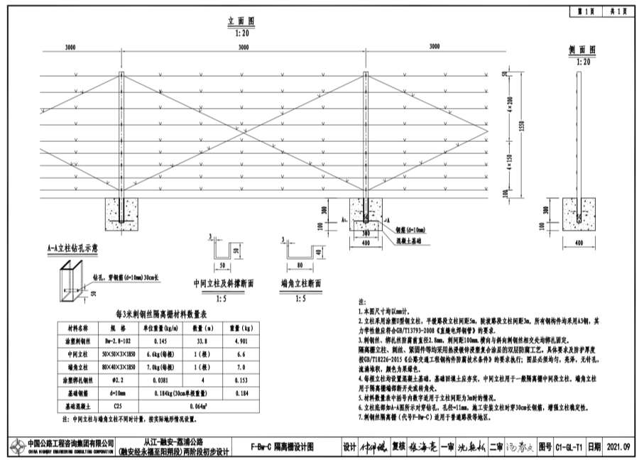 4.每根立柱均設(shè)置混凝土基礎(chǔ)?;A(chǔ)回填土應(yīng)夯實(shí)。中間立柱用于一般隔離柵中間段立柱。端角立柱