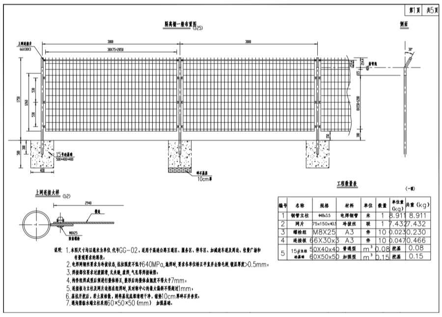 7.每隔200米或遇到溝渠,臨水端立柱采用60X60X50(mm)加強(qiáng)基礎(chǔ)。