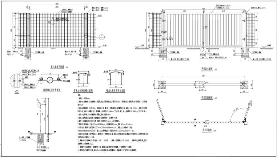 5.圍欄基礎(chǔ)頂標高為地面標高,現(xiàn)場根據(jù)地形坡度適當調(diào)整,可不做場平處理。