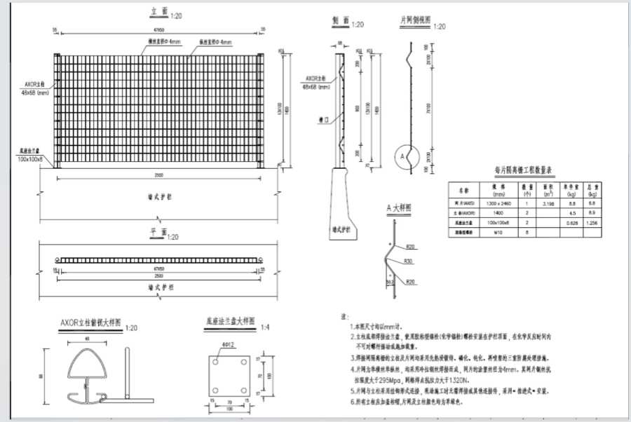 6.所有立桂應(yīng)加蓋柱帽,片網(wǎng)及立柱顏色均為草綠色。