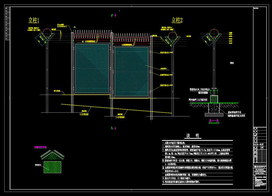 一、本圖大樣適用于圍網(wǎng)各段。